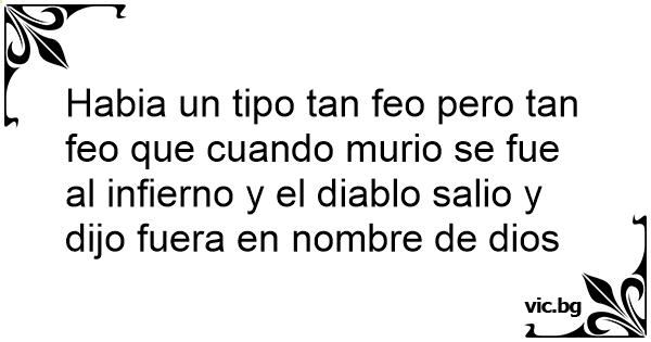 Habia un tipo tan feo pero tan feo que cuando murio se fue al infierno y el diablo salio y dijo fuera en nombre de dios