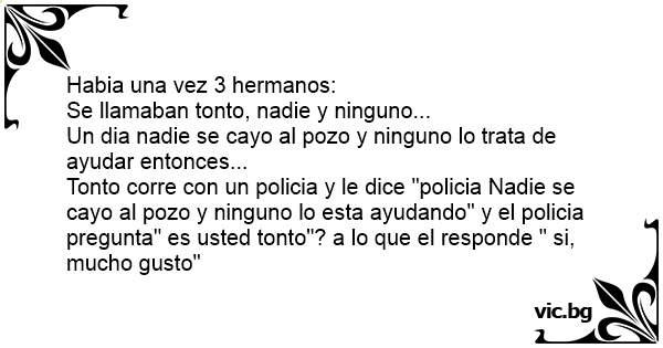 Tonto corre соn un policia y le dice "policia Nadie se cayo al pozo y ninguno lo esta ayudando" y el policia pregunta" es usted тоnто"? a lo que el responde " si, mucho gusto"