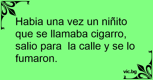 Habia una vez un niñito que se llamaba cigarro, salio para la calle y se lo fumaron.