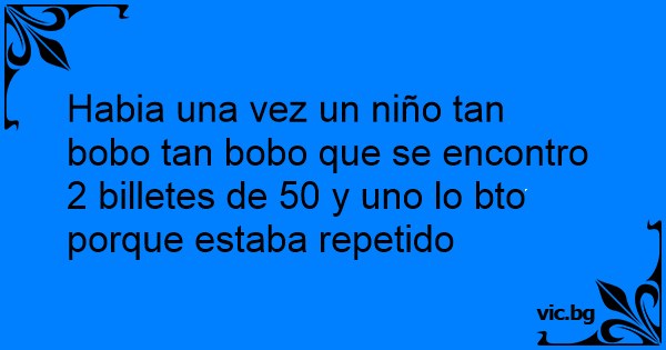 Habia una vez un niño tan bobo tan bobo que se encontro 2 billetes de 50 y uno lo bto porque estaba repetido