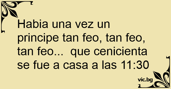 Habia una vez un principe tan feo, tan feo, tan feo... que cenicienta se fue a casa a las 11:30