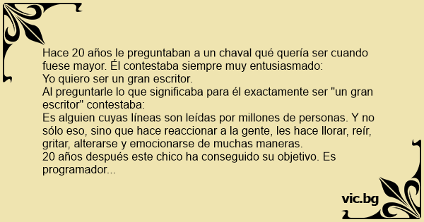 20 años después este chico ha conseguido su objetivo. Es programador de Microsoft, escribe los mensajes de error.