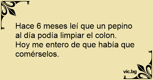 6 месяцев назад я прочитал, что один огурец в день может очищать толстую кишку. Сегодня выяснилось, что их надо было есть.