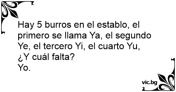 Hay 5 burros en el establo, el primero se llama Ya, el segundo Ye, el tercero Yi, el cuarto Yu,