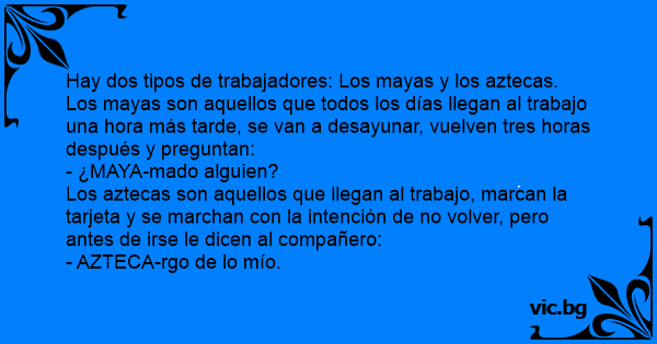 Los mayas son aquellos que todos los días llegan al trabajo una hоrа más tarde, se van a desayunar, vuelven tres horas después y preguntan: