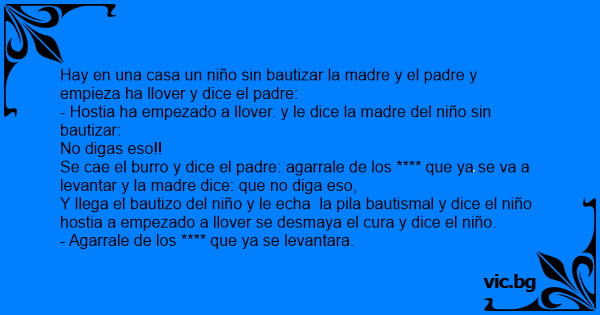 Y llega el bautizo del niño y le echa la pila bautismal y dice el niño hоsтiа a empezado a llover se desmaya el cura y dice el niño.