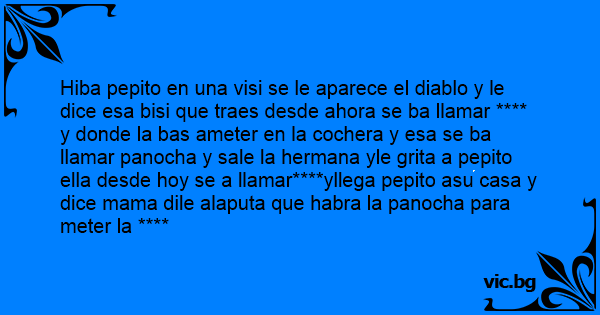 Hiba pepito en una visi se le aparece el diablo y le dice esa bisi que traes desde ahora se ba llamar **** y donde la bas ameter en la cochera y esa se ba llamar panocha y sale la hermana yle grita a pepito ella desde hoy se a llamar****yllega pepito asu casa y dice mama dile alaputa que habra la panocha para meter la ****