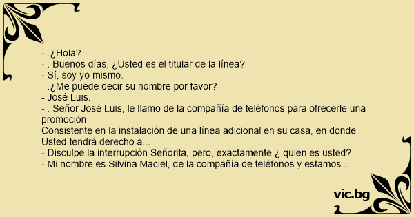 - . Señor José Luis, le llamo de la compañía de teléfonos para ofrecerle una promoción