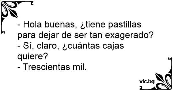 - Hola buenas, ¿tiene pastillas para dejar de ser tan exagerado?