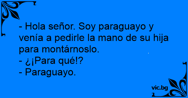 - Hola señor. Soy paraguayo y venía a pedirle la mano de su hija para montárnoslo.