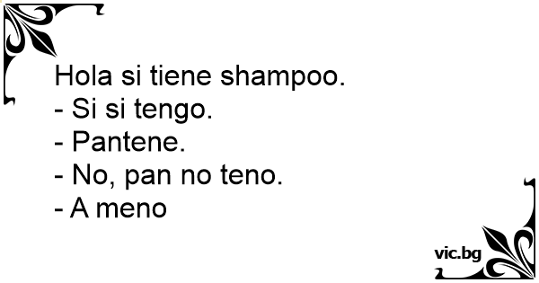 Hola si tiene shampoo.<br />- Si si tengo.<br />- Pantene.<br />- No, pan no teno.<br />- A meno