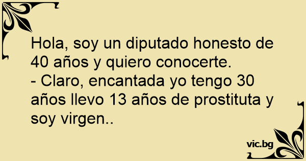 - Claro, encantada yo tengo 30 años llevo 13 años de prostituta y soy virgen..