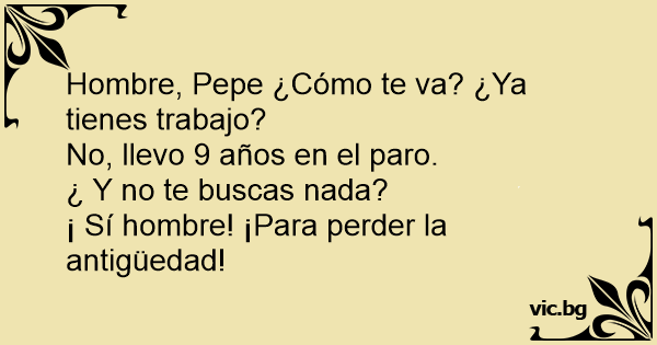 Hombre, Pepe ¿Cómo te va? ¿Ya tienes trabajo?