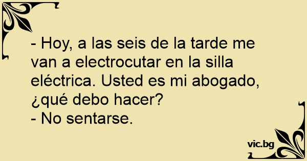 - Hoy, a las seis de la tarde me van a electrocutar en la silla eléctrica. Usted es mi abogado, ¿qué debo hacer?