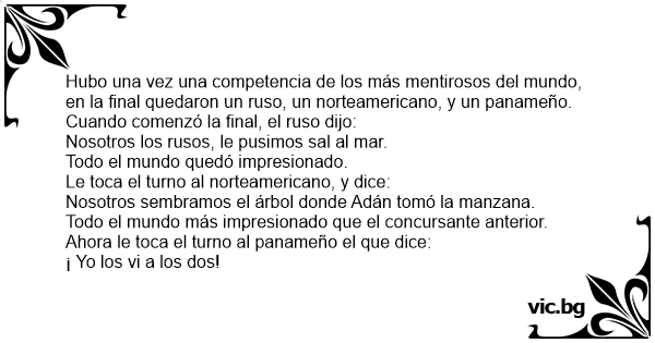Hubo una vez una competencia de los más mentirosos del mundo, en la final quedaron un ruso, un norteamericano, y un panameño.