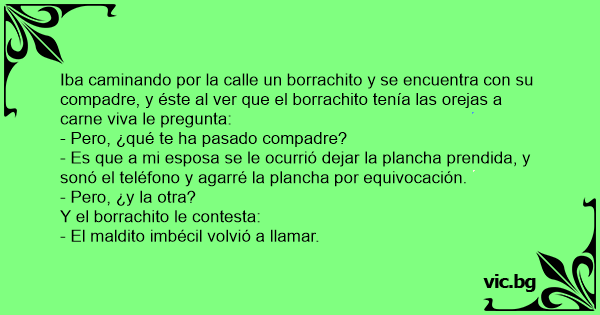 Había un tipo con las dos orejas quemadas y su amigo le pregunta: ¿Por qué tienes las dos orejas quemadas? El atlante le responde: Porque estaba planchando y llamaron por teléfono y contesté con la...