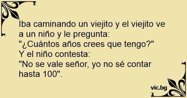 Iba caminando un viejito y el viejito ve a un niño y le pregunta: