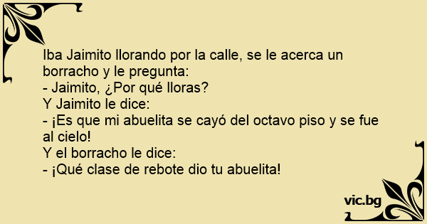 Iba Jaimito llorando por la calle, se le acerca un borracho y le pregunta: