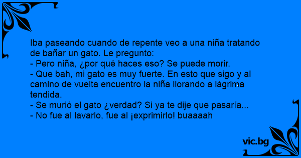 Iba paseando cuando de repente veo a una niña tratando de bañar un gato. Le pregunto: