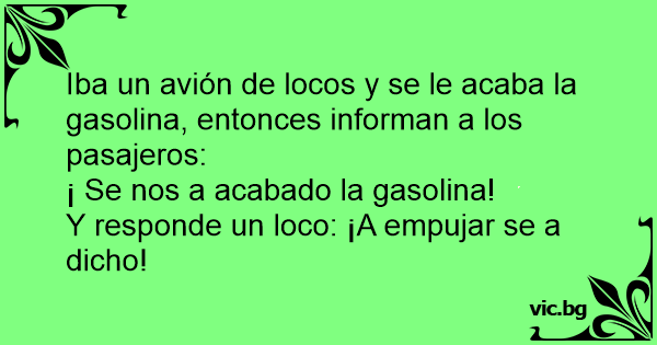 Iba un avión de locos y se le acaba la gasolina, entonces informan a los pasajeros: