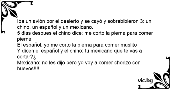 Iba un avión por el desierto y se cayó y sobrebibieron 3: un chino, un español y un mexicano.
