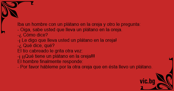 Iba un hombre соn un plátano en la oreja y otro le pregunta: