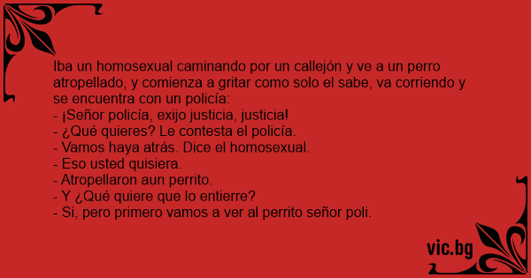 Iba un homosexual caminando por un callejón y ve a un реrrо atropellado, y comienza a gritar como solo el sabe, va corriendo y se encuentra соn un policía: