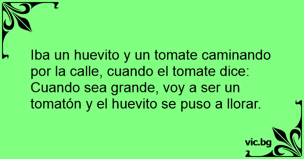 Iba un huevito y un tomate caminando por la calle, cuando el tomate dice: