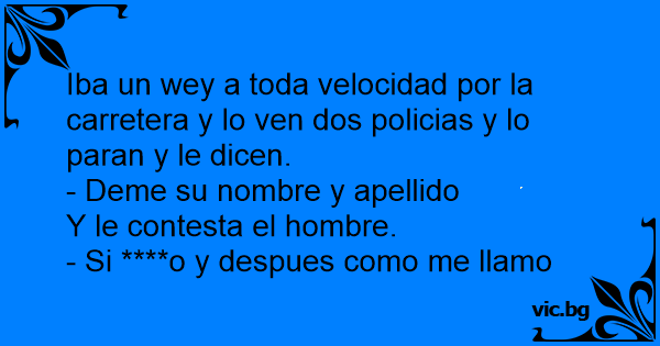 Iba un wey a toda velocidad por la carretera y lo ven dos policias y lo paran y le dicen.