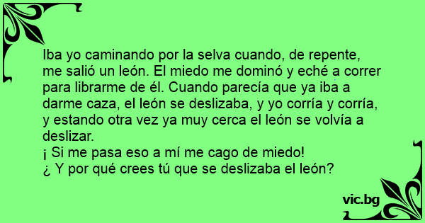 O sujeito volta de um safari e comenta suas aventuras com um amigo: — Rapaz! Eu estava no meio da selva, quando de repente ouço um barulho. Olho para trás e vejo um leão enorme, lambendo os beiços....