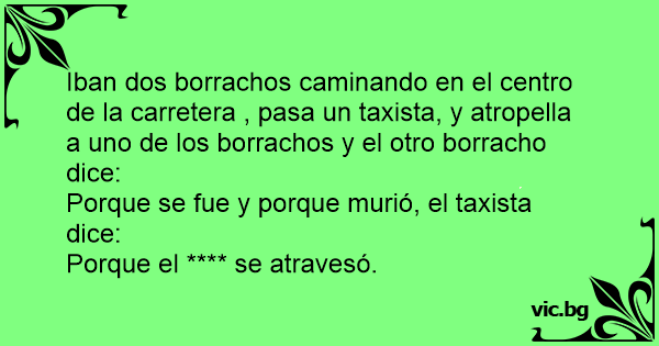 Iban dos borrachos caminando en el centro de la carretera , pasa un taxista, y atropella a uno de los borrachos y el otro borracho dice: