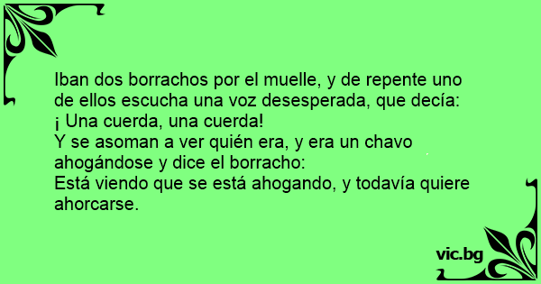 Iban dos borrachos por el muelle, y de repente uno de ellos escucha una voz desesperada, que decía: