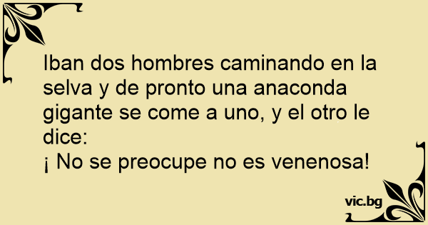 Iban dos hombres caminando en la selva y de pronto una anaconda gigante se come a uno, y el otro le dice: