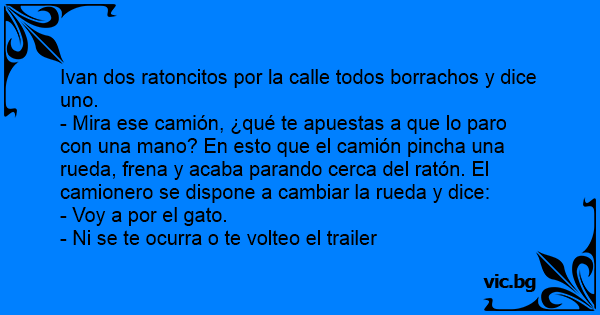 Ivan dos ratoncitos por la calle todos borrachos y dice uno.
