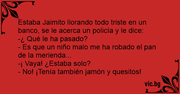 Estaba Jaimito llorando todo triste en un banco, se le acerca un policía y le dice:
