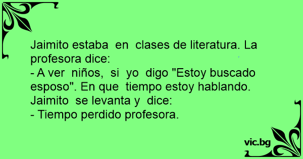 - A ver niños, si yo digo "Estoy buscado esposo". En que tiempo estoy hablando.