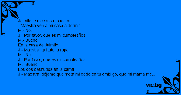 J.- Maestra, déjame que meta mi dedo en tu ombligo, que mi mama me deja.