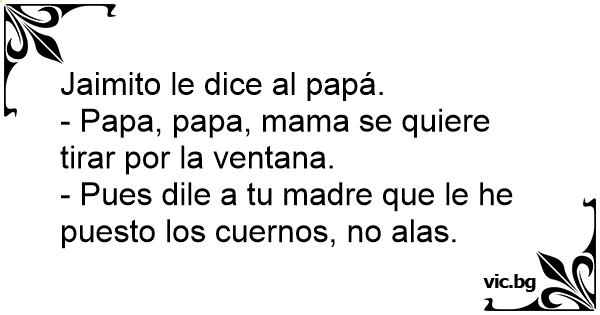 - Mamá, mamá; papá quiere tirarse de la azotea. - Dile a tu padre que lo que le he puesto son dos cuernos, no dos alas.