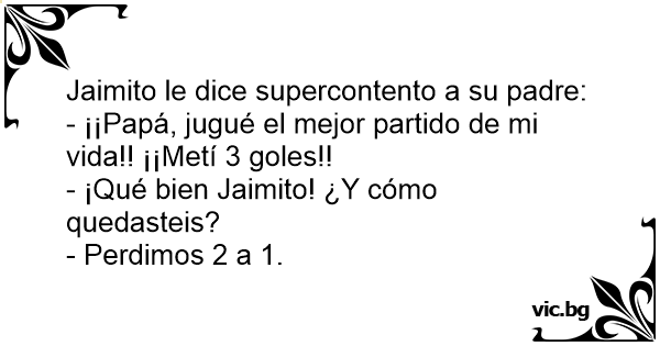- ¡¡Papá, jugué el mejor partido de mi vida!! ¡¡Metí 3 goles!!