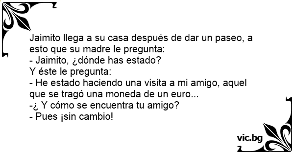 Jaimito llega a su casa después de dar un paseo, a esto que su madre le pregunta: