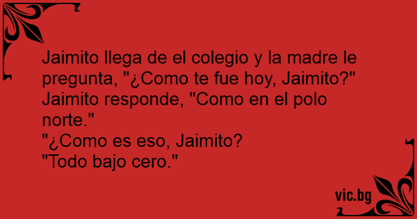 Jaimito llega de el colegio y la madre le pregunta, "¿Como te fue hoy, Jaimito?"