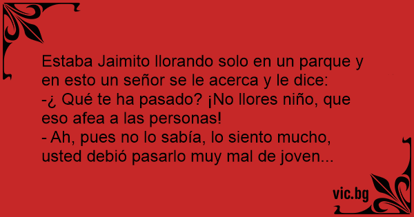 Estaba Jaimito llorando solo en un parque y en esto un señor se le acerca y le dice: