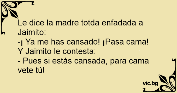 - Pues si estás cansada, para cama vete tú!