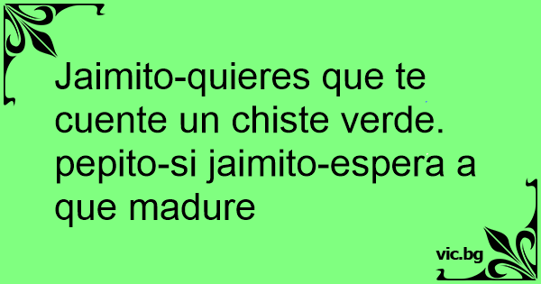 Jaimito-quieres que te cuente un chiste verde. pepito-si jaimito-espera a que madure