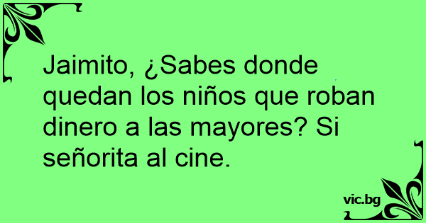 Jaimito, ¿Sabes donde quedan los niños que roban dinero a las mayores? Si señorita al cine.