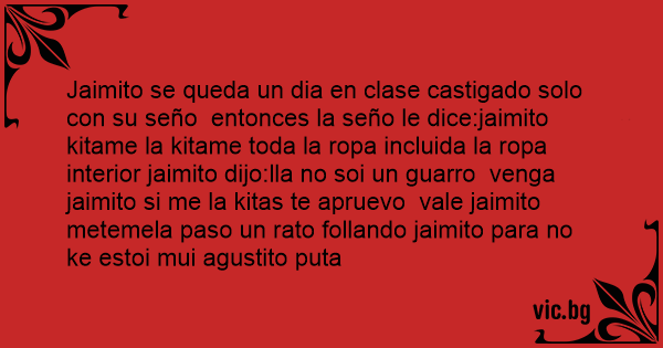 Jaimito se queda un dia en clase castigado solo соn su seño entonces la seño le dice:jaimito kitame la kitame toda la ropa incluida la ropa interior jaimito dijo:lla no soi un guarro venga jaimito si me la kitas te apruevo vale jaimito metemela paso un rato follando jaimito para no ke estoi mui agustito puta