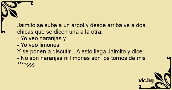 Jaimito se sube a un árbol y desde arriba ve a dos chicas que se dicen una a la otra: