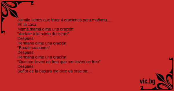 Jaimito tienes que traer 4 oraciones para mañana.....