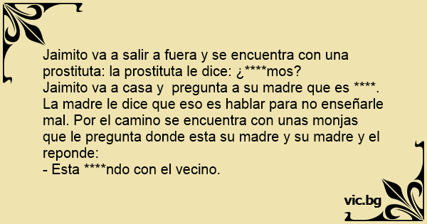 Jaimito va a casa y pregunta a su madre que es ****. La madre le dice que eso es hablar para no enseñarle mal. Por el camino se encuentra соn unas monjas que le pregunta donde esta su madre y su madre y el reponde: