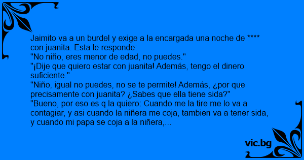 Jaimito va a un burdel y exige a la encargada una noche de **** соn juanita. Esta le responde: